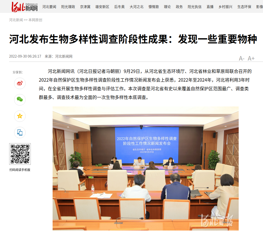 河北新闻网:河北发布生物多样性调查阶段性成果:发现一些重要物种