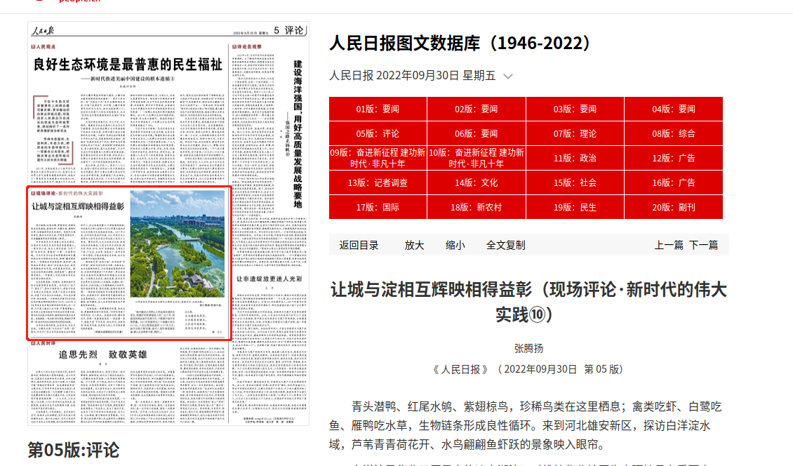 人民日报:让城与淀相互辉映相得益彰