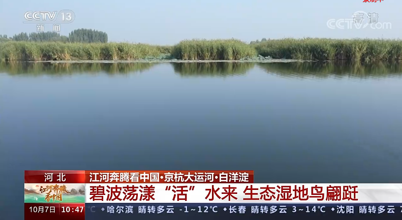 CCTV13 新闻直播间: 河奔腾看中国京杭大运河白洋淀 碧波荡漾“活”水来 生态湿地鸟蹁跹