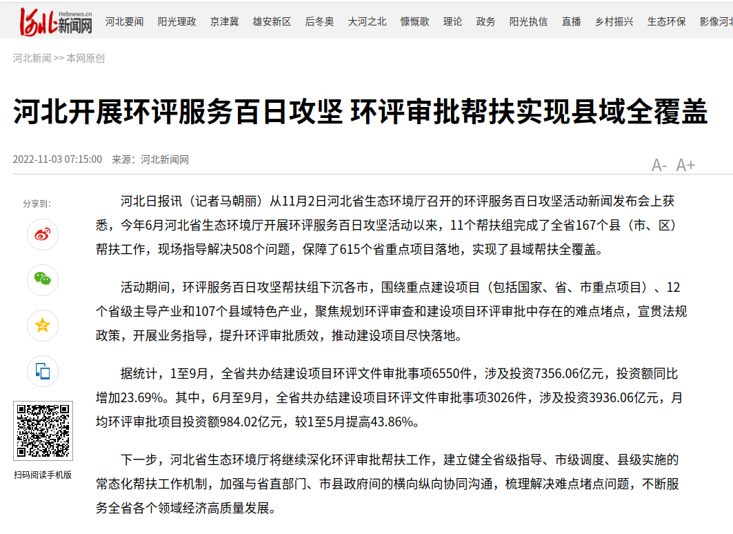 河北新闻网:河北开展环评服务百日攻坚 环评审批帮扶实现县域全覆盖