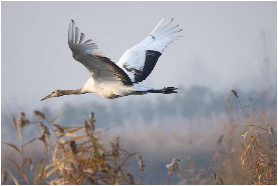 丹顶鹤属于大型涉禽,是我国鹤家族中的大型鹤类,生性机敏,偏好洁净而开阔的湿地,是对湿地环境变化非常敏感的指示生物。