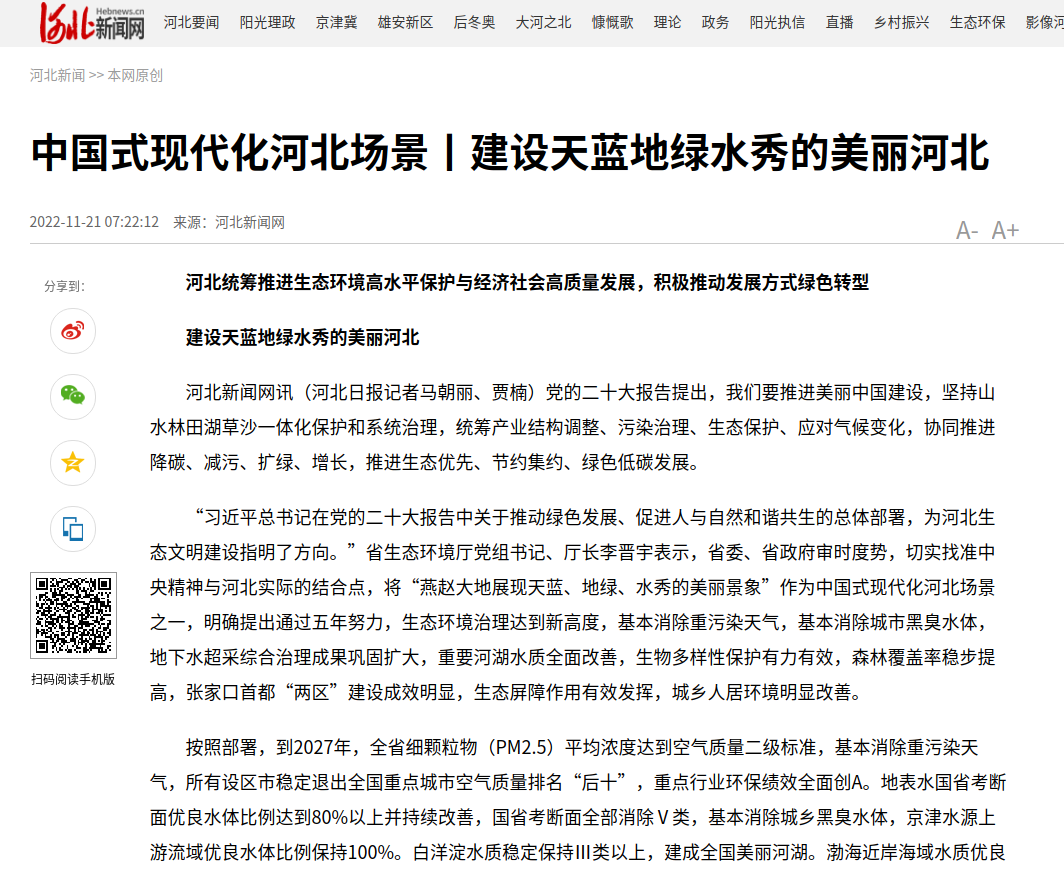河北新闻网: 中国式现代化河北场景丨建设天蓝地绿水秀的美丽河北