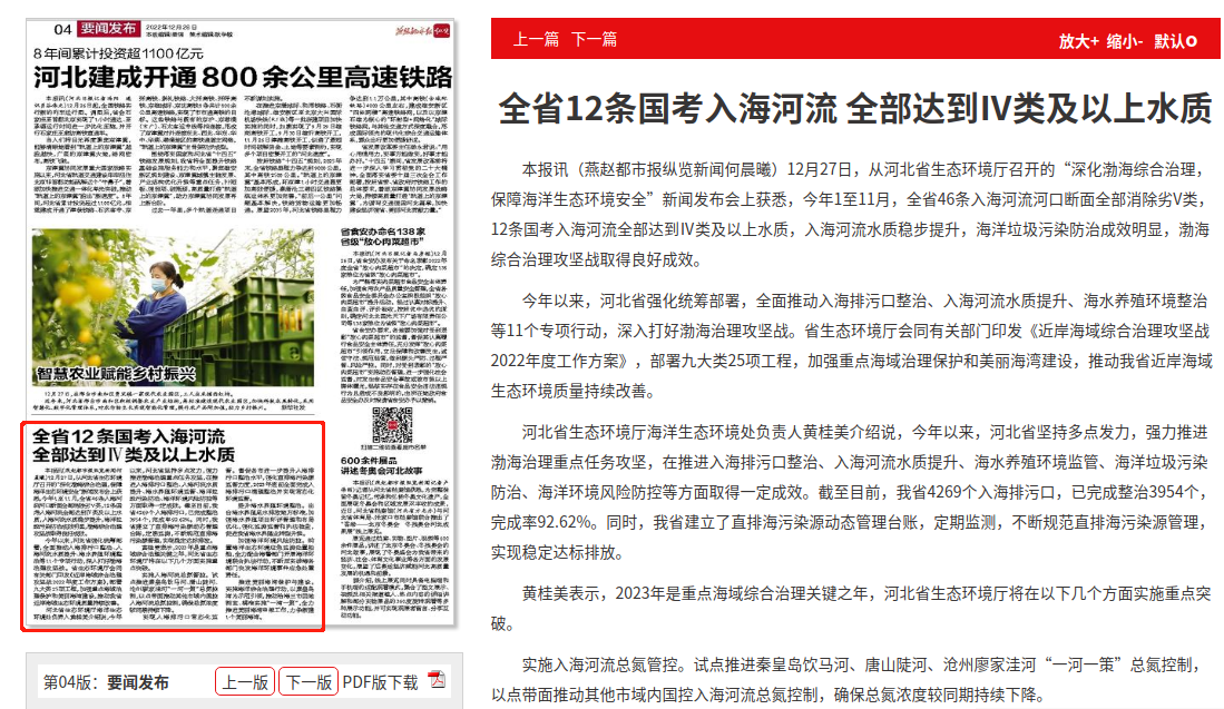 今年以来,河北省强化统筹部署,全面推动入海排污口整治、入海河流水质提升、海水养殖环境整治等11个专项行动,深入打好渤海治理攻坚战。东京热 会同有关部门印发《近岸海域综合治理攻坚战2022年度工作方案》,部署九大类25项工程,加强重点海域治理保护和美丽海湾建设,推动我省近岸海域生态环境质量持续改善。