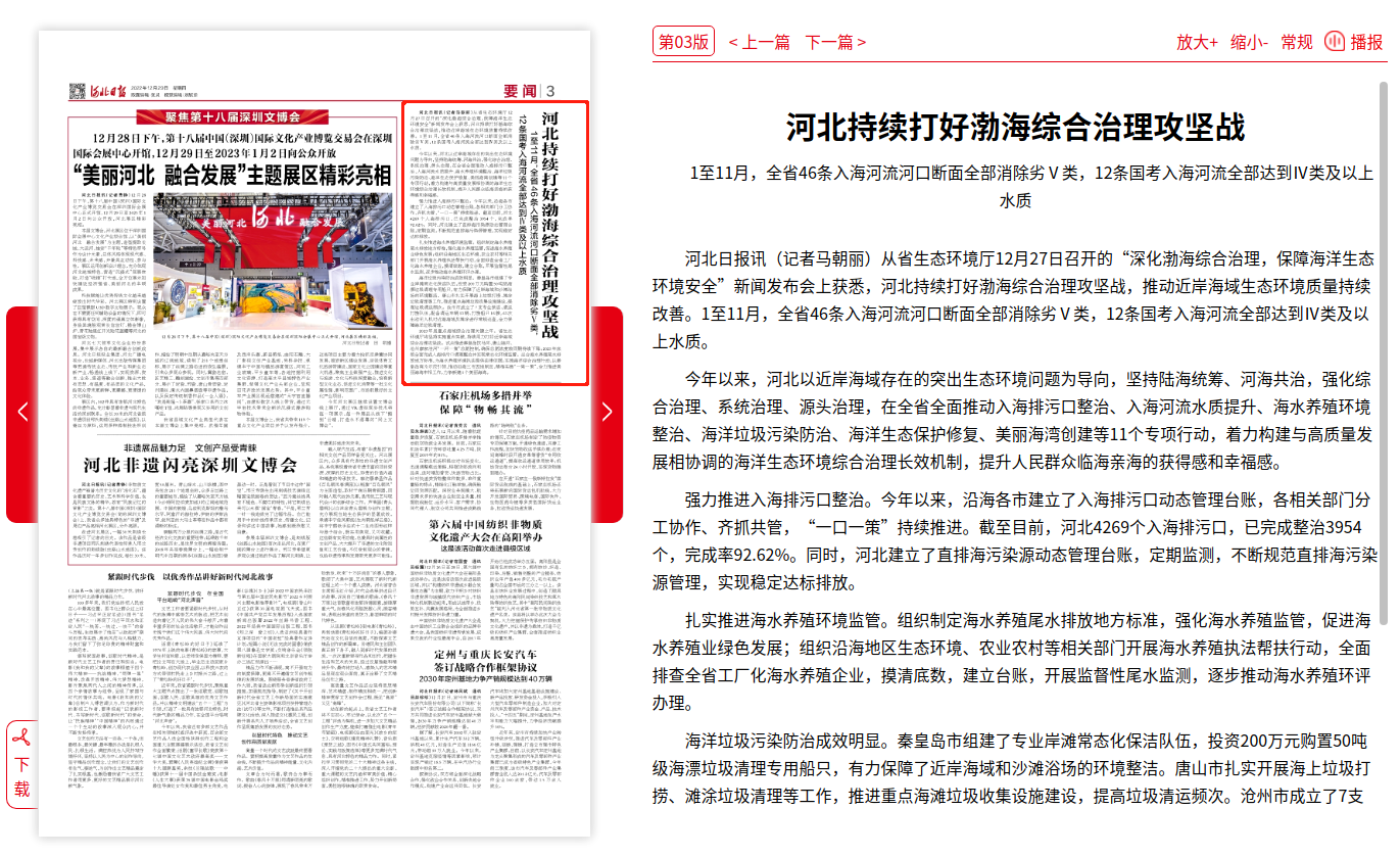河北日报:河北持续打好渤海综合治理攻坚战