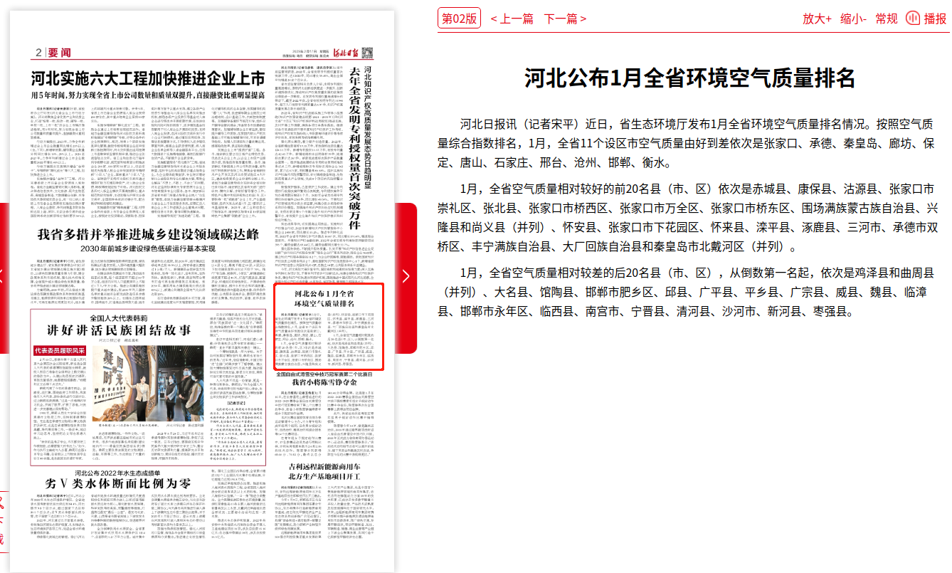 河北日报:河北公布1月全省环境空气质量排名