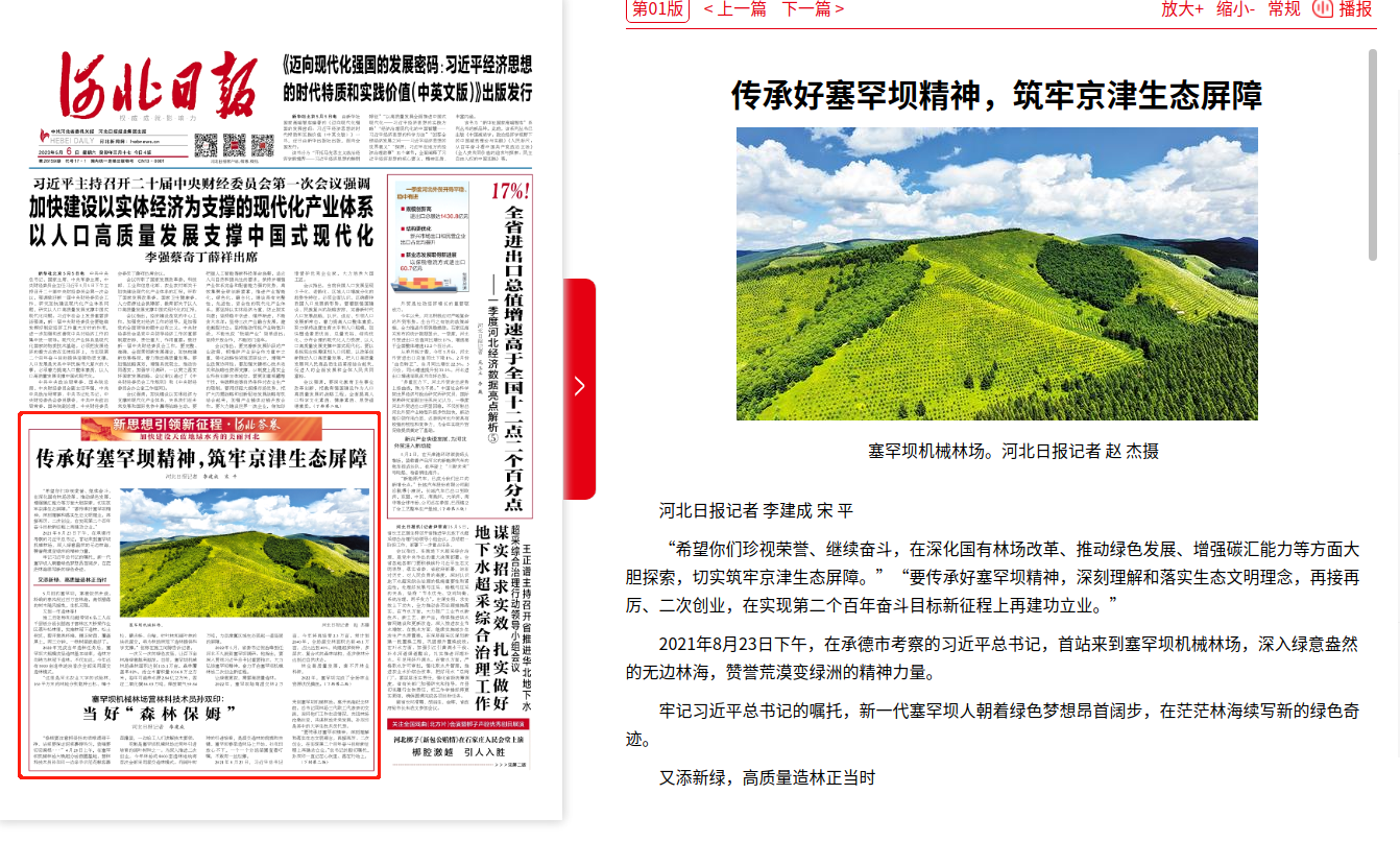 河北日报:传承好塞罕坝精神,筑牢京津生态屏障