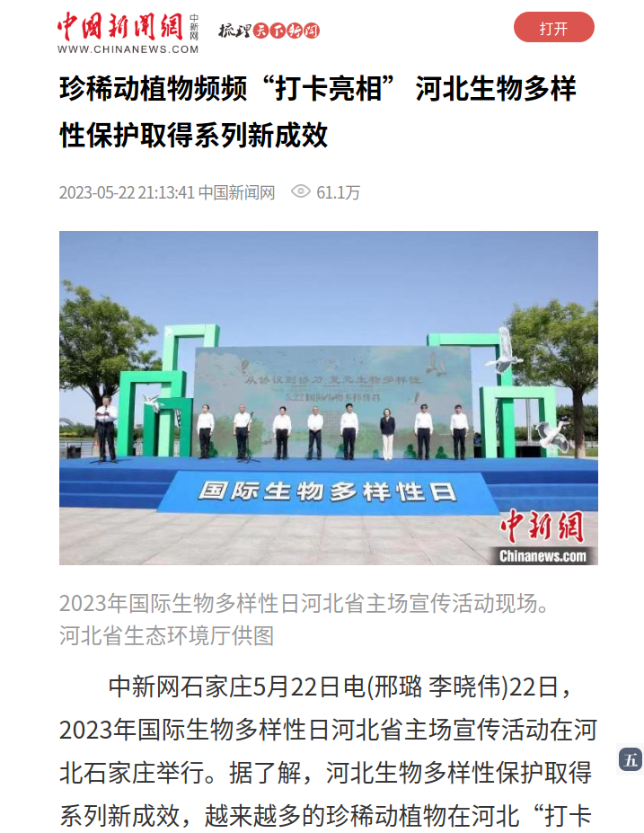 中国新闻网 :珍稀动植物频频“打卡亮相” 河北生物多样性保护取得系列新成效