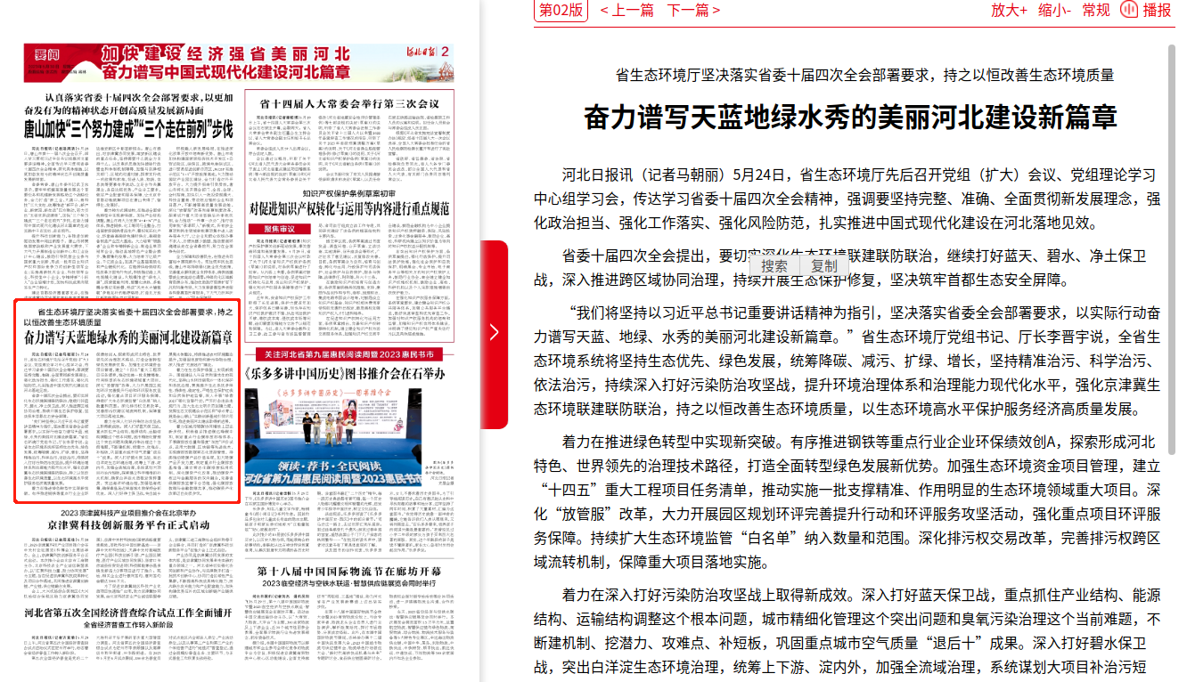 河北日报:奋力谱写天蓝地绿水秀的美丽河北建设新篇章