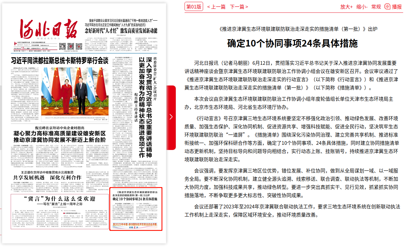 河北日报:《推进京津冀生态环境联建联防联治走深走实的措施清单(第一批)》出炉 确定10个协同事项24条具体措施