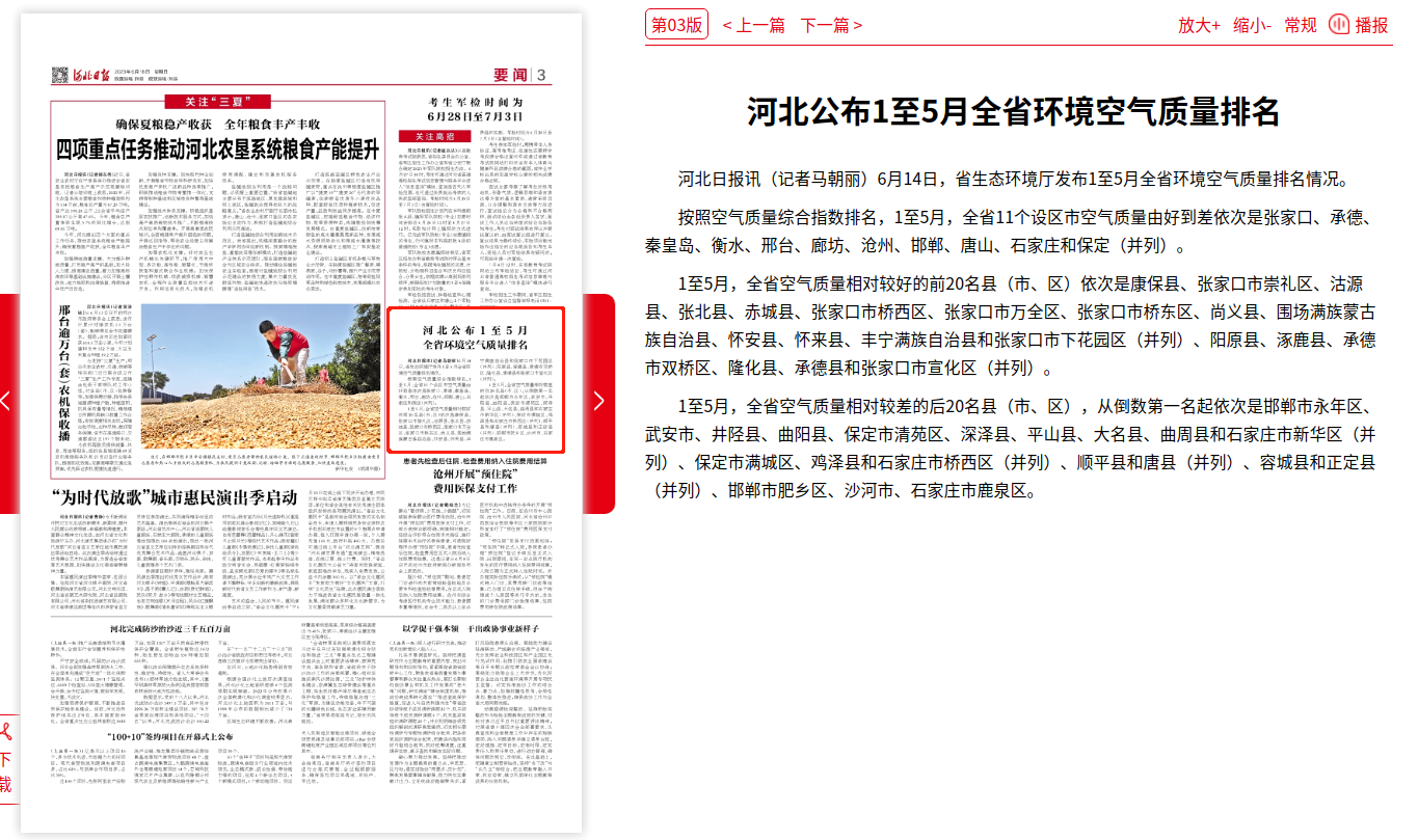 河北日报讯(记者马朝丽)6月14日,东京热 发布1至5月全省环境空气质量排名情况。