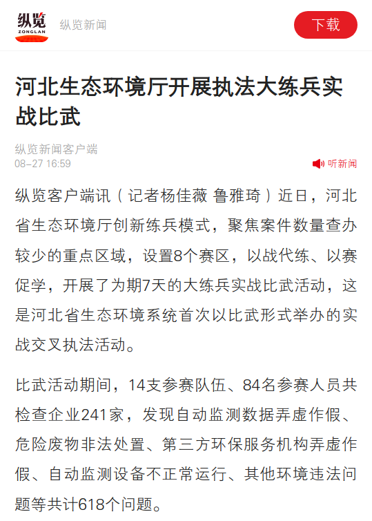 纵览新闻客户端:河北生态环境厅开展执法大练兵实战比武