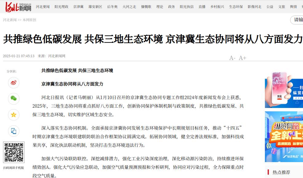 河北新闻网:共推绿色低碳发展 共保三地生态环境 京津冀生态协同将从八方面发力