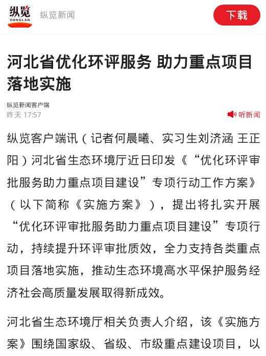 相关负责人介绍,该《实施方案》围绕国家级、省级、市级重点建设项目,以及重点行业与领域、预约挂号建设项目,提出一系列优化环评服务的具体措施,加快重点项目环评进程,确保项目顺利落地。