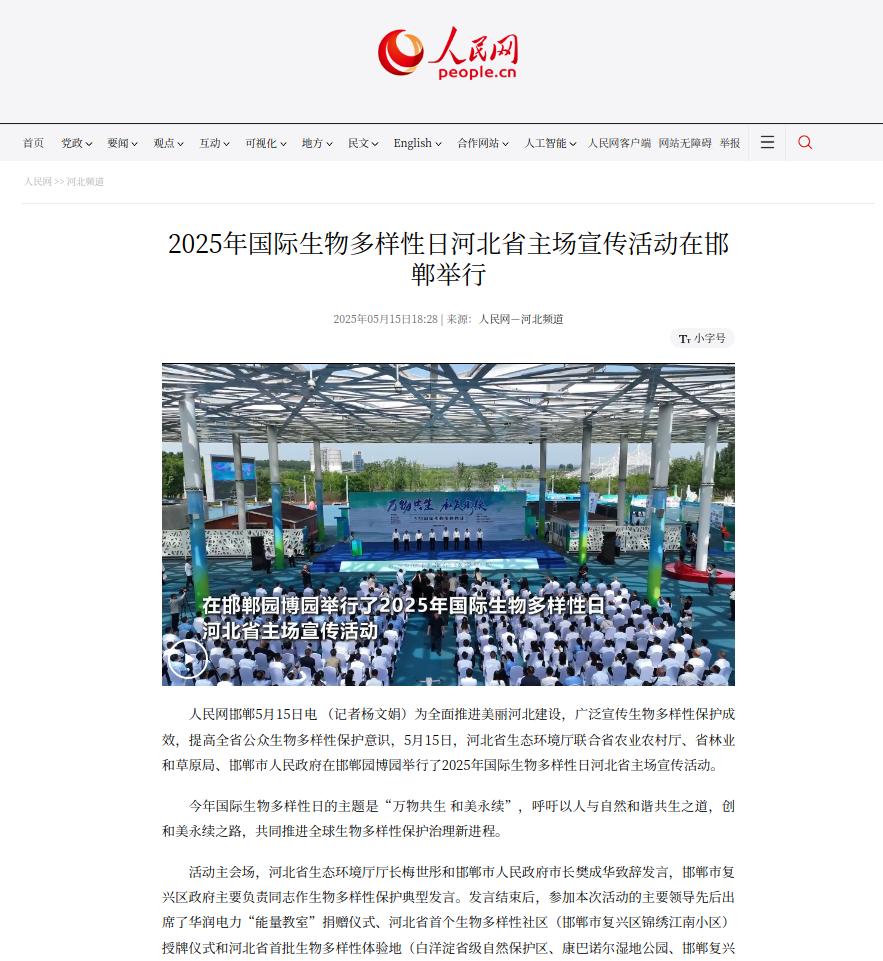 人民网:2025年国际生物多样性日河北省主场宣传活动在邯郸举行