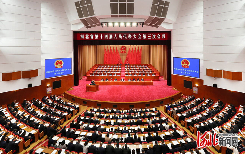 1月13日上午,河北省第十四届人民代表大会第三次会议在河北会堂开幕。这是会议现场。 河北日报记者张昊摄