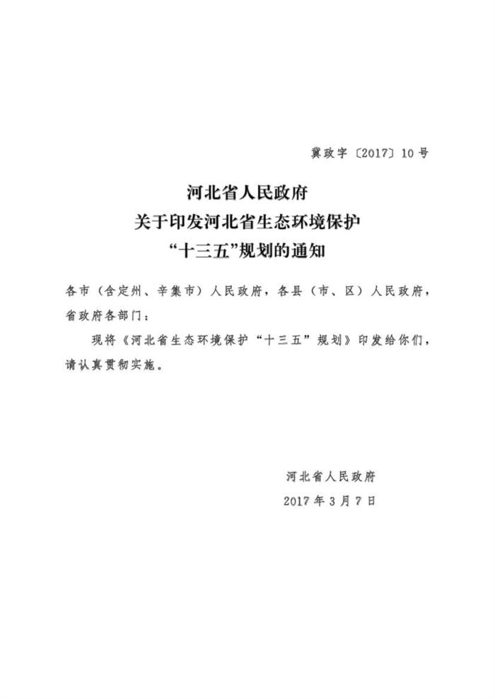 河北省人民政府 关于印发河北省生态环境保护 “十三五”规划的通知