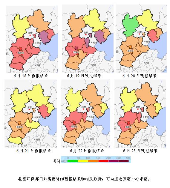 18~20日,受高温及太阳辐射增强影响,我省北部以良至轻度污染为主,中南部以轻至中度污染为主,其中18~19日个别城市可能出现重度污染。