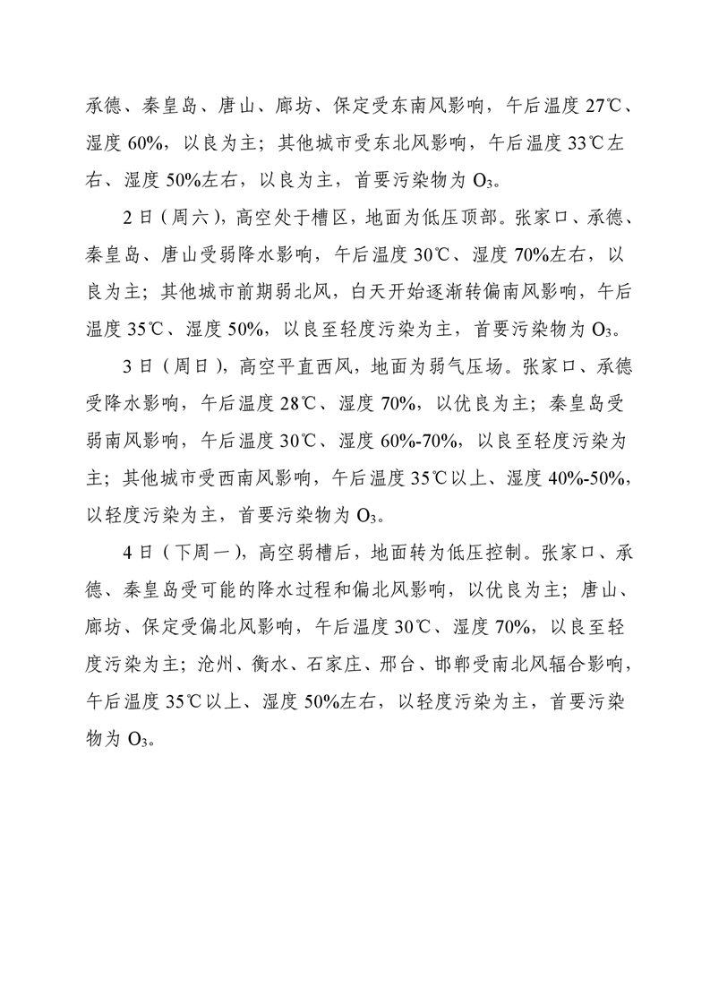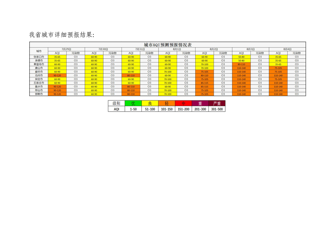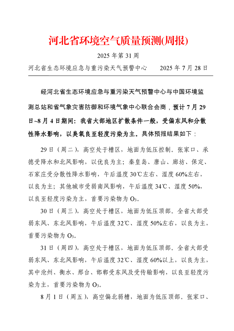 河北省空气质量预测报告周报2025年第31周