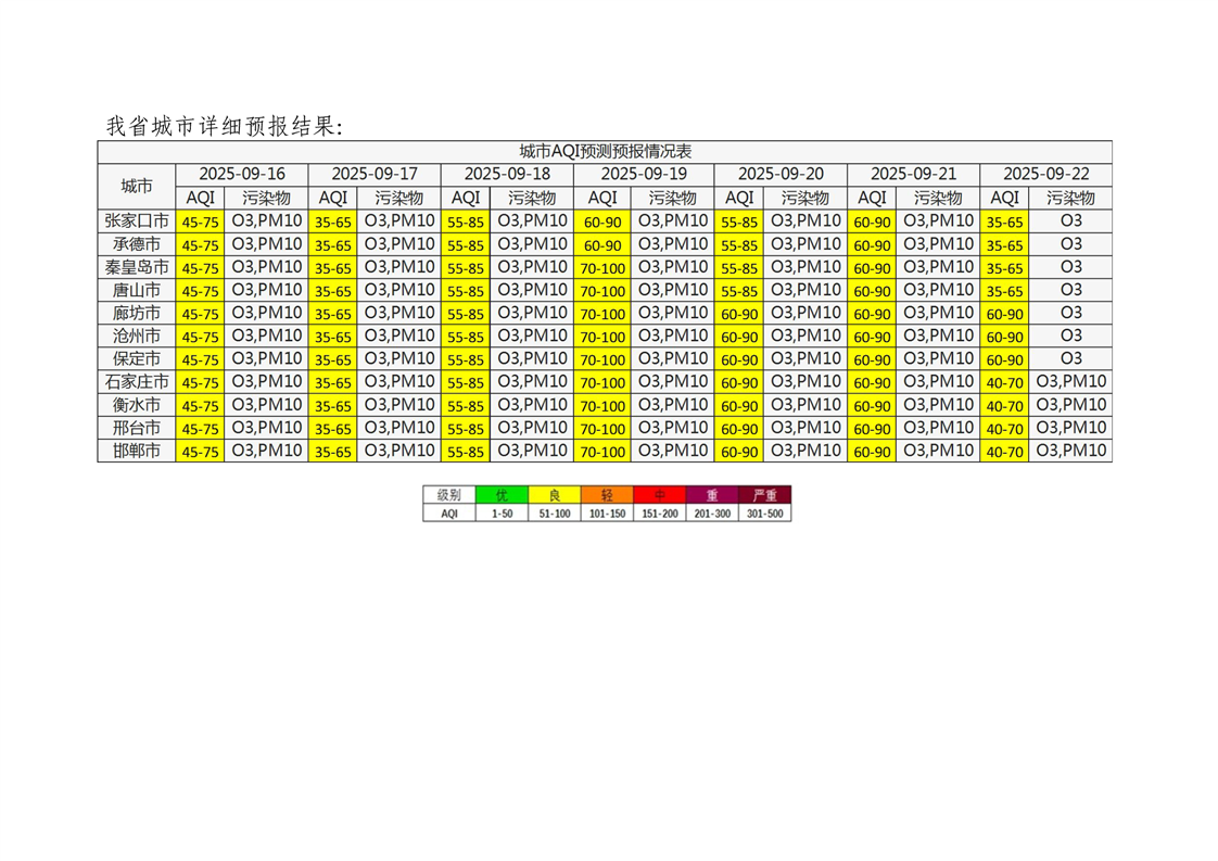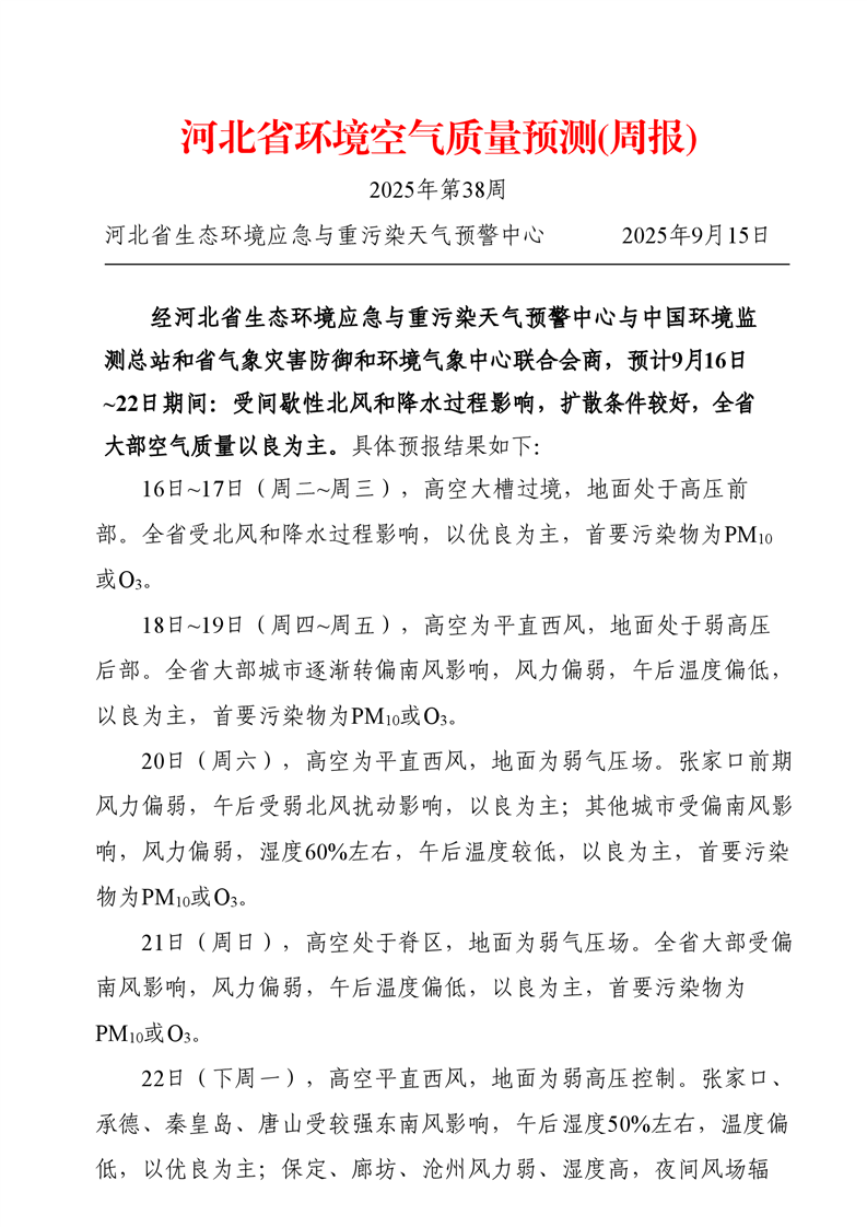 河北省空气质量预测报告周报2025年第38周