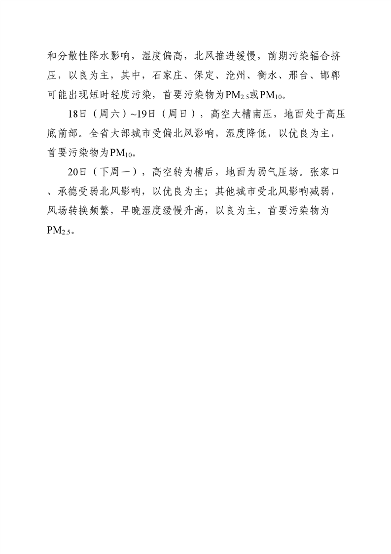 河北省空气质量预测报告周报2025年第42周