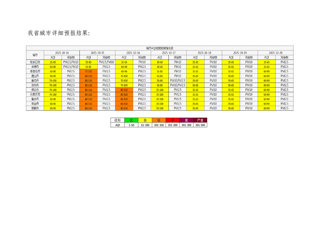 河北省空气质量预测报告(周报)2025年第42周