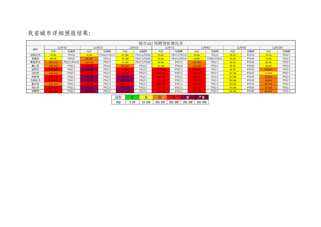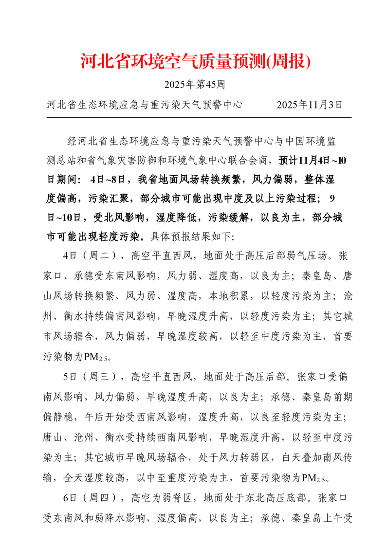 河北省空气质量预测报告周报2025年第45周
