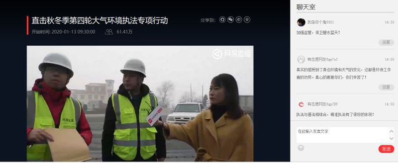 1月12日—13日,东京热 针对邯郸武安市空气质量不降反升的问题,在原有执法组的基础上,增派精干力量对邯郸市钢铁、焦化企业开展“解剖式”执法检查。在检查河北文丰钢铁有限公司、河北华丰能源科技发展有限公司时,网易河北新闻组跟随执法人员对执法检查全过程进行了网络直播,直播效果良好,累计观看人数达61.41万人。而这不过是执法检查行动期间最平常的一天,如此高关注度的背后,折射出公众对环境执法过程的关注度可见一斑。