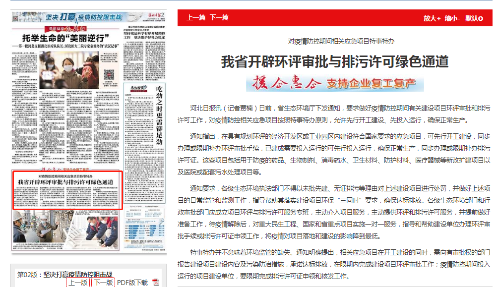通知指出,在具有规划环评的经济开发区或工业园区内建设符合国家要求的应急项目,可先行开工建设,同步办理或限期补办环评审批手续,已建成需要投入运行的可先行投入运行,确保正常生产,同步办理或限期补办排污许可证。这些项目包括用于防疫的药品、生物制剂、消毒药水、卫生材料、防护材料、医疗器械等新改扩建项目以及医院或配套污水处理项目等。