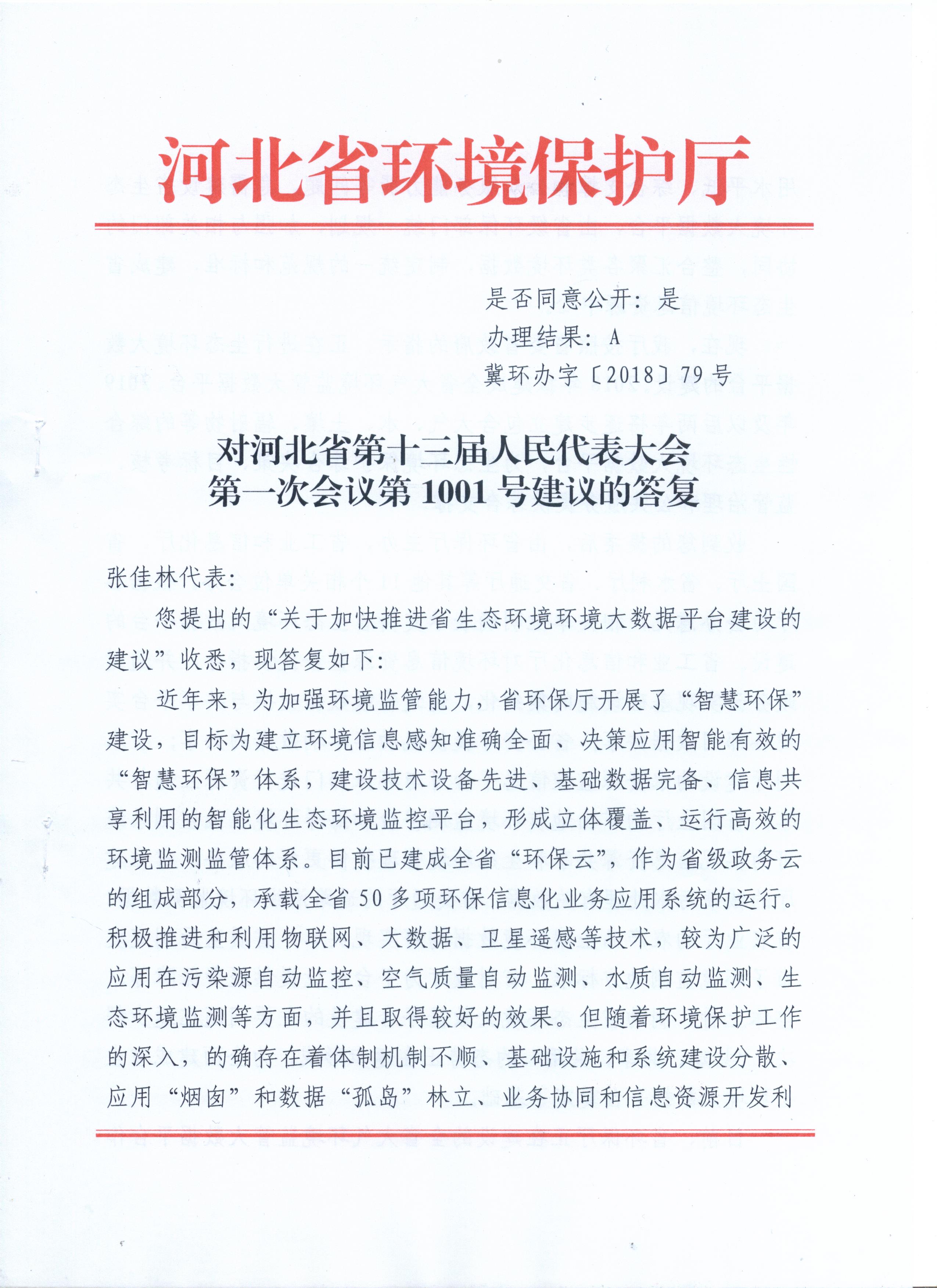 对河北省第十三届人民代表大会第一次会议第1001号建议的答复
